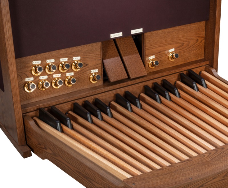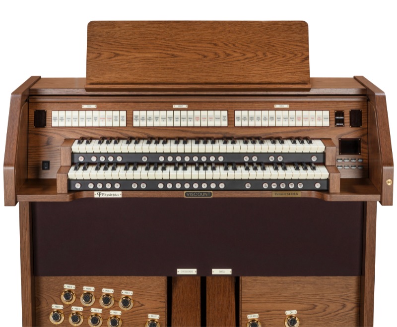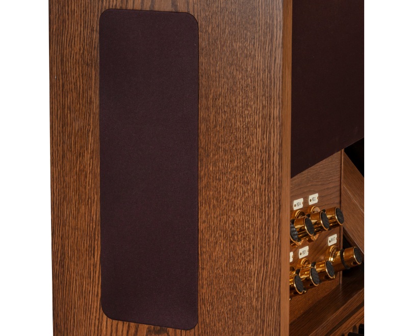 The Consort 34 is an ideal instrument for home and for smaller churches and halls, having a traditional cabinet style with locking fall. Using our Physis Plus modelling technology, the Consort 34 DLX has an English voice list of 34 speaking tabs with an 6.2 internal surround-sound audio system. It is available in Dark, Medium and Light Oak wood veneer finishes. Up to 12 channels of external audio can also be added.